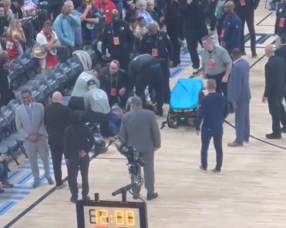 据ESPN记者Michael C. Wright报道,因场边发生紧急医疗情况本场比赛被迫暂停,急救人员目前正在为一位坐在场边的观众进行心肺复苏。